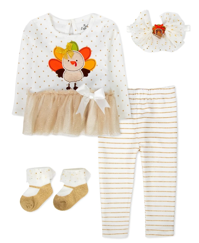 Baby Essentials Baby Girls Thanksgiving Leggings Outfit, 4 Piece Set