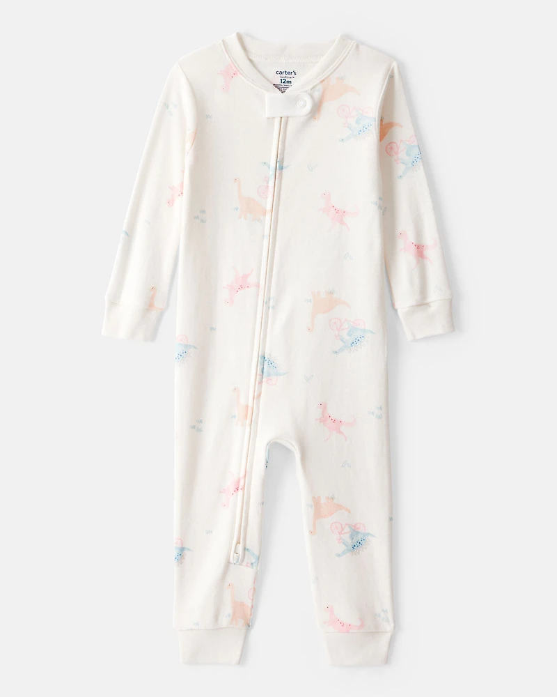 Baby Girl Dinosaur Print 100% Cotton Long-Sleeve 2-Way Zip 1-Piece Pajamas - White in Bloomington, MN
