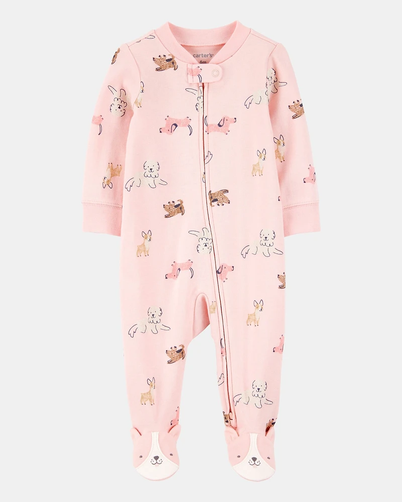 Baby Girl Dog Print 2-Way Zip Cotton Sleep & Play Pajamas - Pink