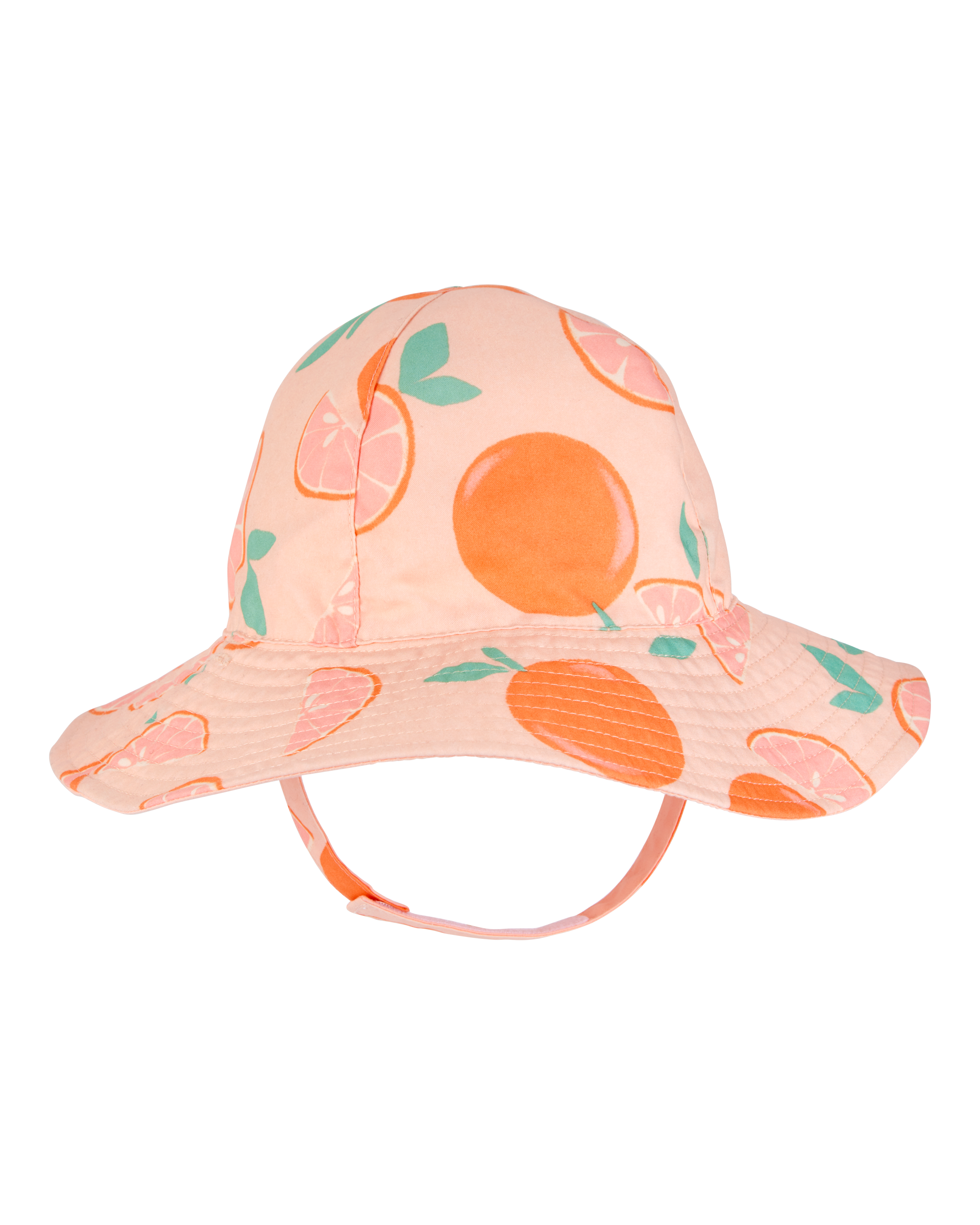 Baby Girl Orange Fruit Print Reversible Swim Hat - Orange/Peach