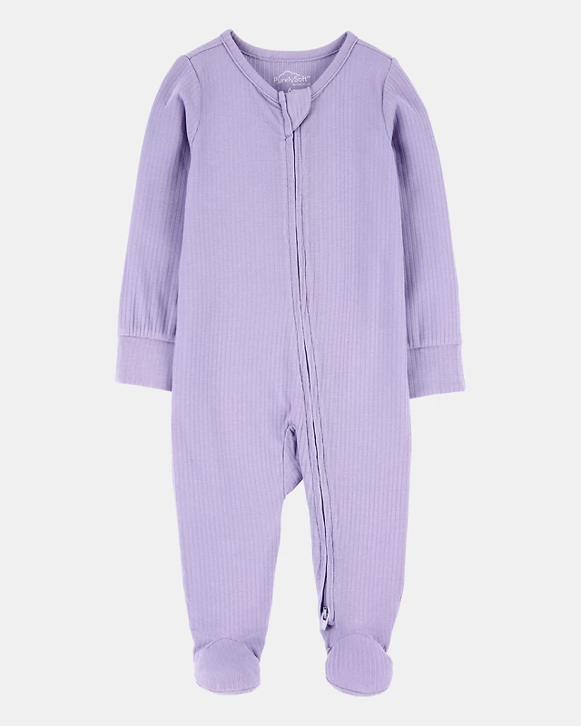 Baby Girl Solid 2-Way Zip PurelySoft Sleep & Play Pajamas - Purple