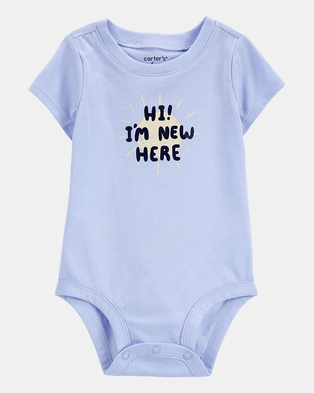 Baby "I'm New Here" Short-Sleeve Bodysuit - Blue