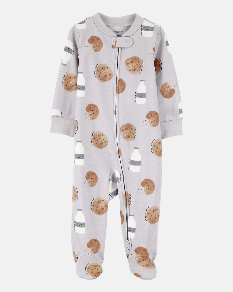 Baby Milk & Cookies 2-Way Zip Cotton Sleep & Play Pajamas - Grey