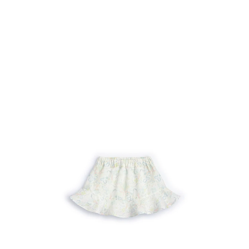 The skirt showcases the seasonal motif in pastel shades, combining ribbons, clovers and lily of the valley. Crafted in printed ivory cotton poplin, it features a delicate, flared silhouette. Complete with an elastic waistband for easy dressing, it is accented by a pale pink Dior bee embroidery. Enhanced by a ruffled hem, the lightweight skirt can be paired with the matching shirt from the collection for a fresh head-to-toe look.