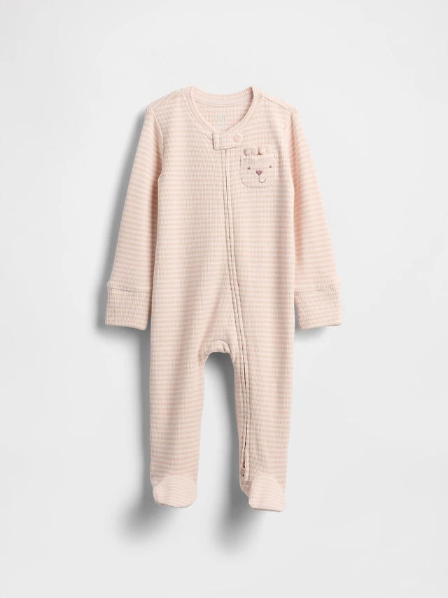 Baby Softspun Waffle Bear Pocket Footed One-Piece