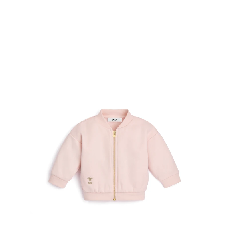 The sweatshirt offers a relaxed silhouette. Crafted in pale pink cotton fleece, it is elevated by a gold-tone Dior bee embroidery on the waist. Featuring a front zip closure, it is completed by ribbed edges for added comfort. The soft sweatshirt will pair with the matching track pants from the collection for a laid-back look.