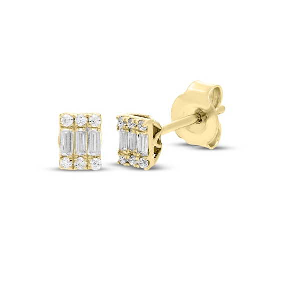 Baguette & Round-Cut Multi-Diamond Stud Earrings 1/6 ct tw 10K Yellow Gold