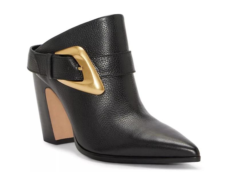 Captivate anyone with the stunning Vince Camuto Baily mule. The pointed-toe mule displays an oversized buckle that brings an inviting look. A slightly-slanted block heel brings a modern look, while offering elevated support.