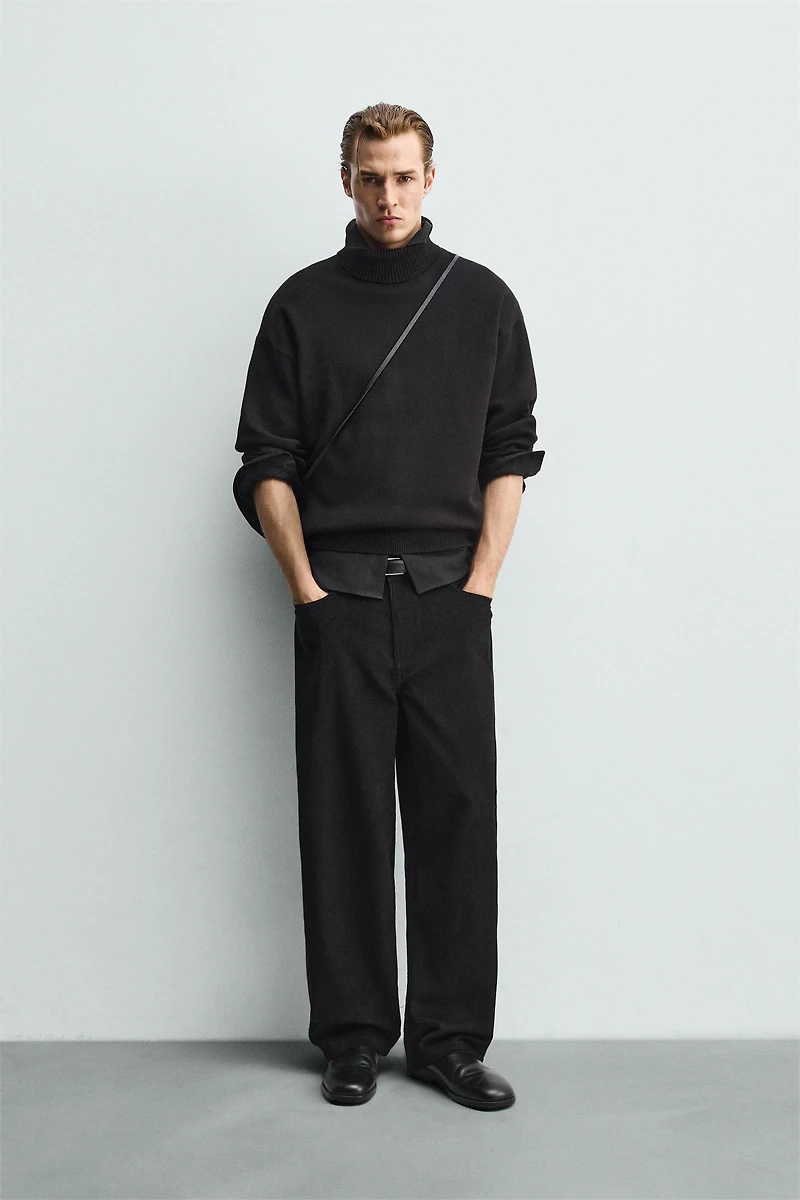 Balloon fit pants made of cotton corduroy. Five pockets. Front zip and button closure.