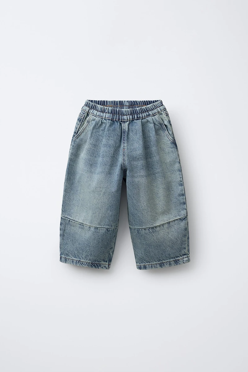 Balloon jeans with an elastic waistband. Front pockets and back patch pockets.