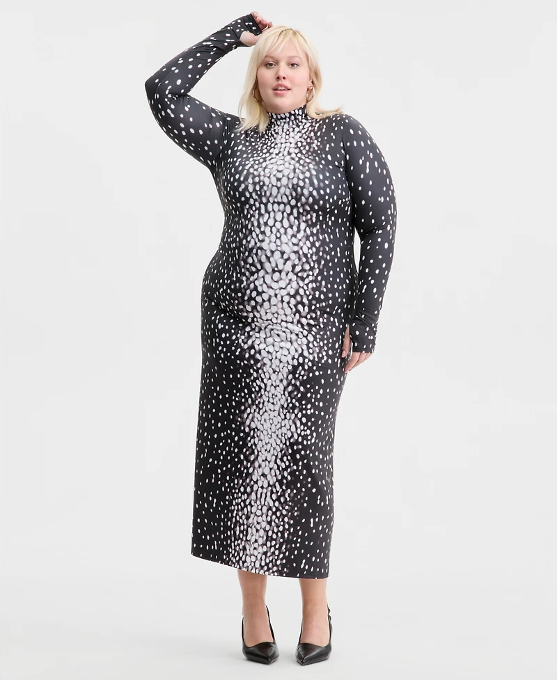 Bar Iii Trendy Plus Printed Mock-Neck Midi Dress, Macy's Exclusive