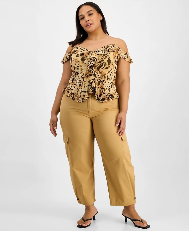 Bar Iii Trendy Plus Cotton Wide-Leg Cargo Pants, Macy's Exclusive