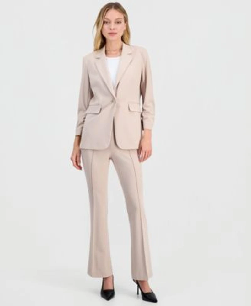 Bar Iii Womens Crepe One Button Scrunched Sleeve Jacket Crepe High Rise Flared Leg Pants Macys Exclusive