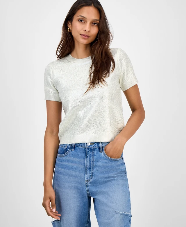 Bar Iii Women's Foiled Short-Sleeve Sweater, Macy's Exclusive