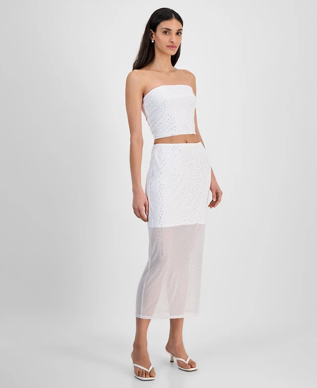 Bar Iii Women's Rhinestone Mesh Tube Skirt, Exclusively at Macy's