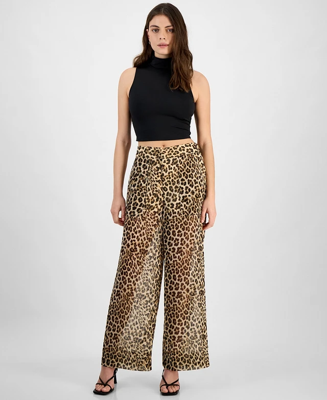 Bar Iii Women's Sheer Cheetah-Print High-Rise Wide-Leg Pants, Exclusively at Macy's