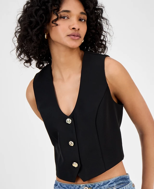 Bar Iii Women's V-Neck Button-Front Sleeveless Vest, Exclusively at Macy's