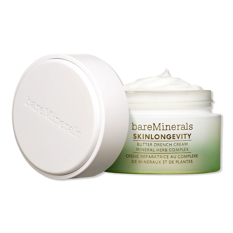 SKINLONGEVITY BUTTER DRENCH CREAM. Benefits: This buttery-rich moisturizer locks in moisture, restoring softness and suppleness to your skin*. Use as the final touch for a healthy, radiant glow* in your skincare routine.. Gluten-free + formulated without synthetic fragrance, PEGs and more. Dermatologist-tested. Suitable for all skin types and tones. Safe for sensitive skin. Research Results: Clinically proven to immediately boost hydration by 267% instantly*. Clinically proven to reduce signs of aging and fine lines & wrinkles instantly and overtime*. Clinically proven to help improve skin texture by 29% after four weeks*. Clinically proven to improve skin barrier by 23% after four weeks* . Clinically proven to plump skin by 24% after four weeks*. *Based on an independent clinical study. Key Ingredients: Mineral Herb Complex- Mineral-rich plant-based complex to help combat the signs of aging. Shea Butter- Provides intense moisture and nourishment. Peptide Blend- Enhances skin's resilience for a lasting radiant glow. Ceramides- Help maintain and prevent moisture loss.