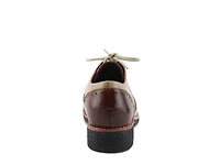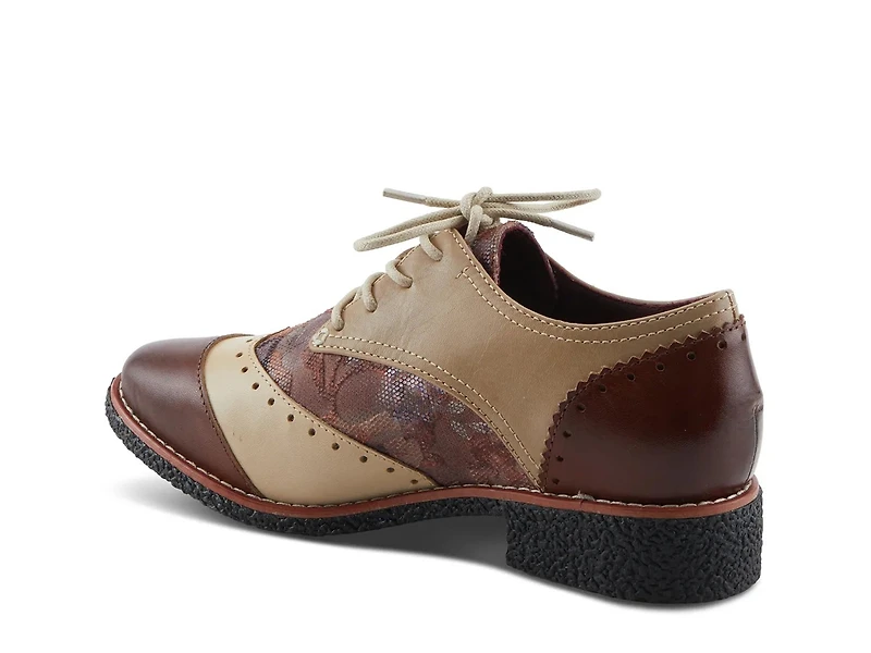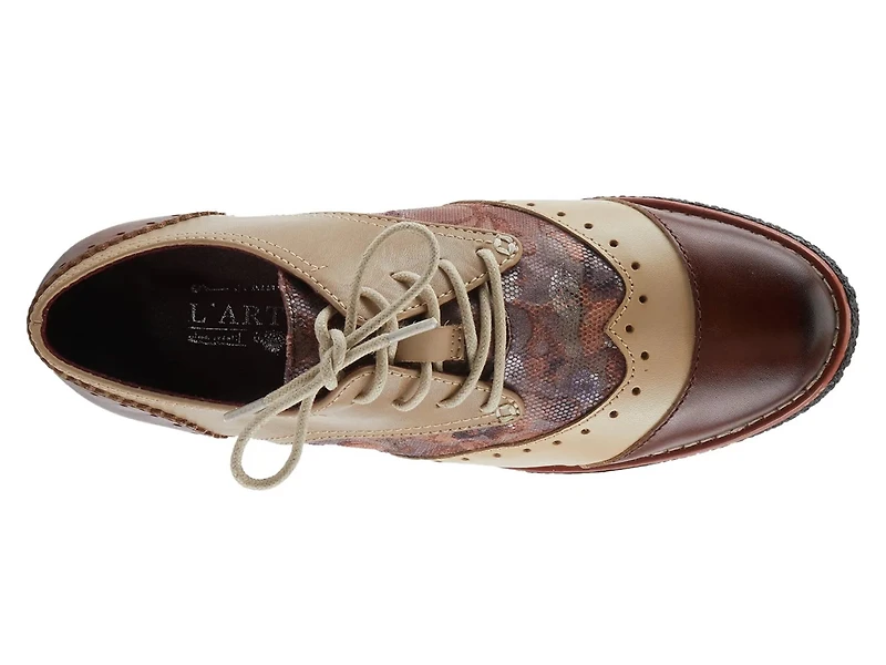 Classic menswear design meets bold artistry in this baroque-inspired L'Artiste Bargiasti pump. The premium leather combo upper seamlessly blends smooth textures, intricate brogue detailing, and a subtle floral print for a one-of-a-kind, fashion-forward aesthetic. Its cushioned insole promises comfort that lasts all day. A durable, textured outsole adds a contemporary edge, making this pump perfect for those who value both style and individuality.