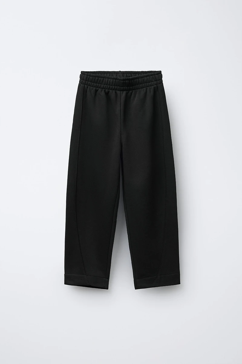 Barrel pants with elastic waistband. Brushed interior, warm and soft quality.