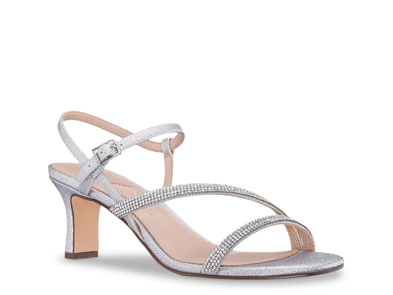 The Barry sandal from N by Nina brings a fresh, modern vibe with its asymmetrical two-piece design and sparkling rhinestone accents. This sandal’s square open toe and covered block heel create a fashion-forward silhouette for formal occasions.