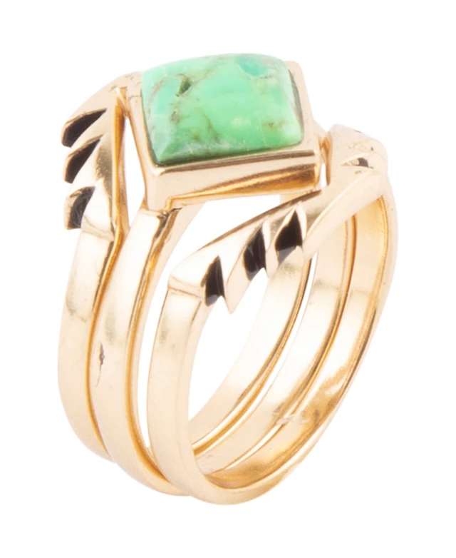 Barse Mission Bronze and Genuine Lime Turquoise Stack Rings