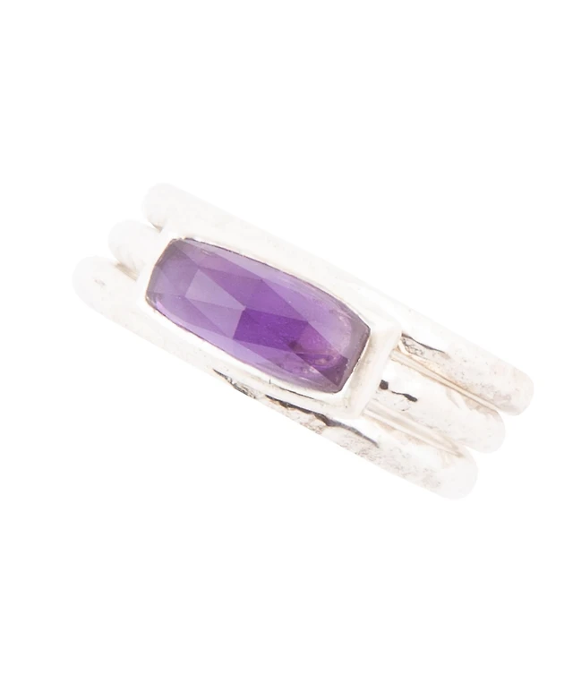 Barse Stack Genuine Purple Amethyst Rectangle Sterling Silver Ring