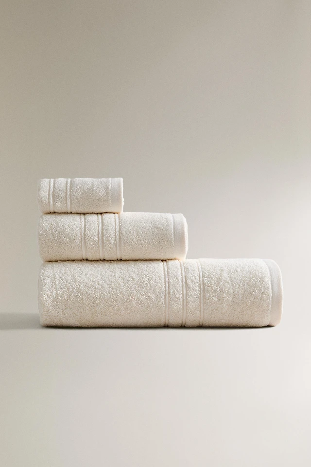COTTON BATH TOWEL WITH PLEATED BORDER