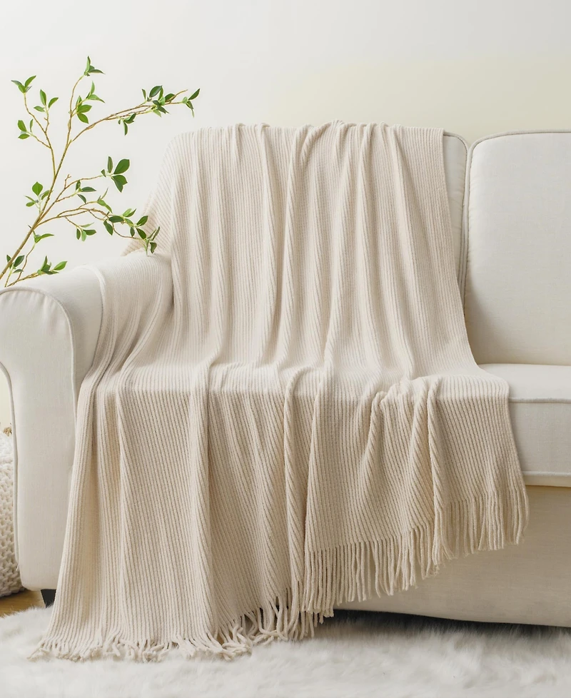 Battilo Classic Textured Ribbed Knit Throw, 50" x 60"