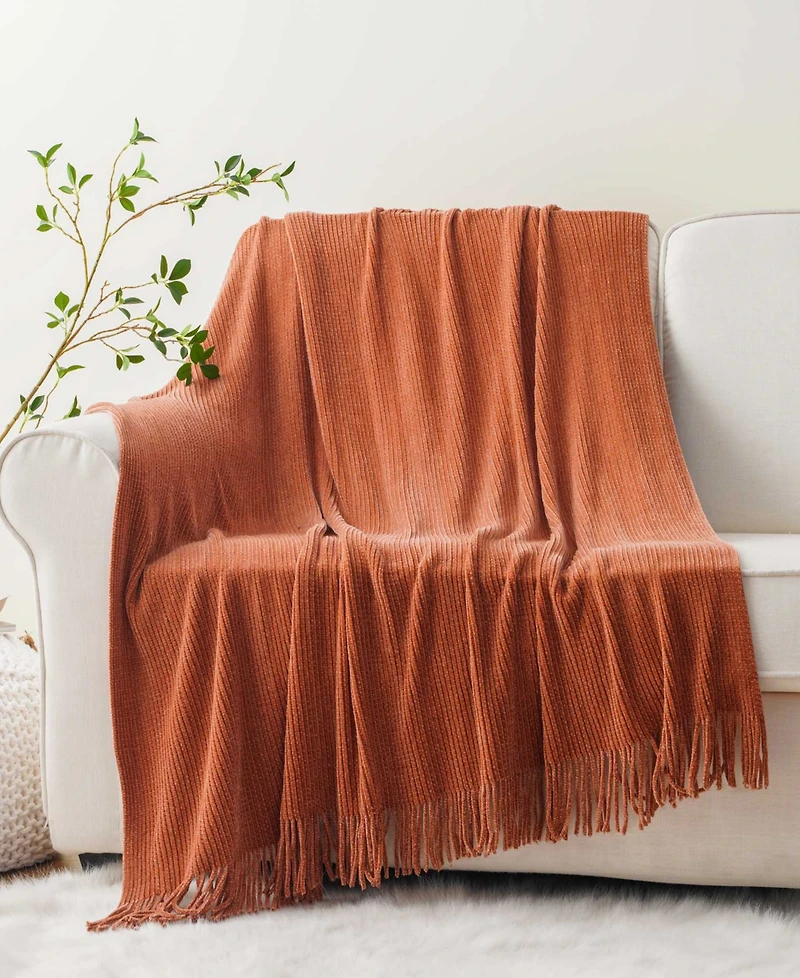 Battilo Classic Textured Ribbed Knit Throw, 50" x 60"