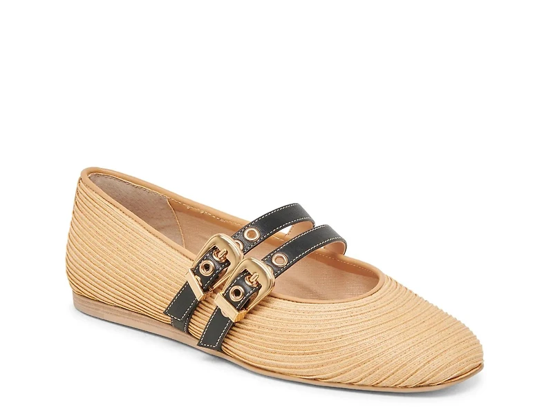 Embrace ballet-inspired vibes with the Dolce Vita Baylee flat. Crafted with Mary Jane-inspired straps, this pair features a double buckle design that keeps the style looking edgy. Finished off with a raffia upper that adds a textured touch.