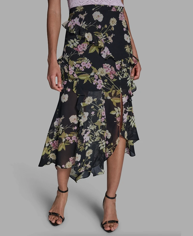 Bcbg Women's Side Zipper Printed Ruffle Maxi Skirt