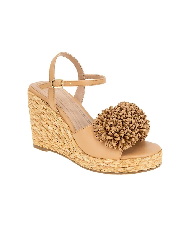 BCBGeneration Women's Erika Raffia Flower Wedge Sandals