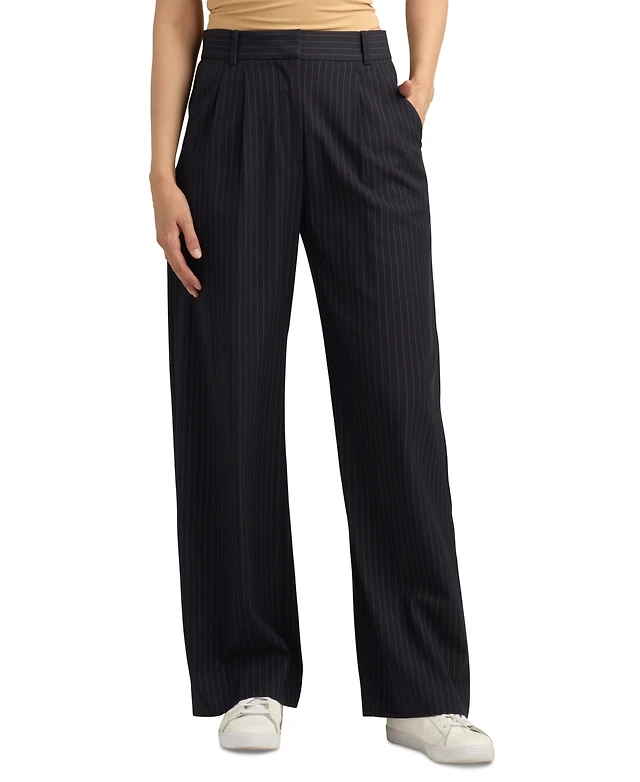 Bcx Juniors' Chalk Stripe Wide-Leg Suit Pants