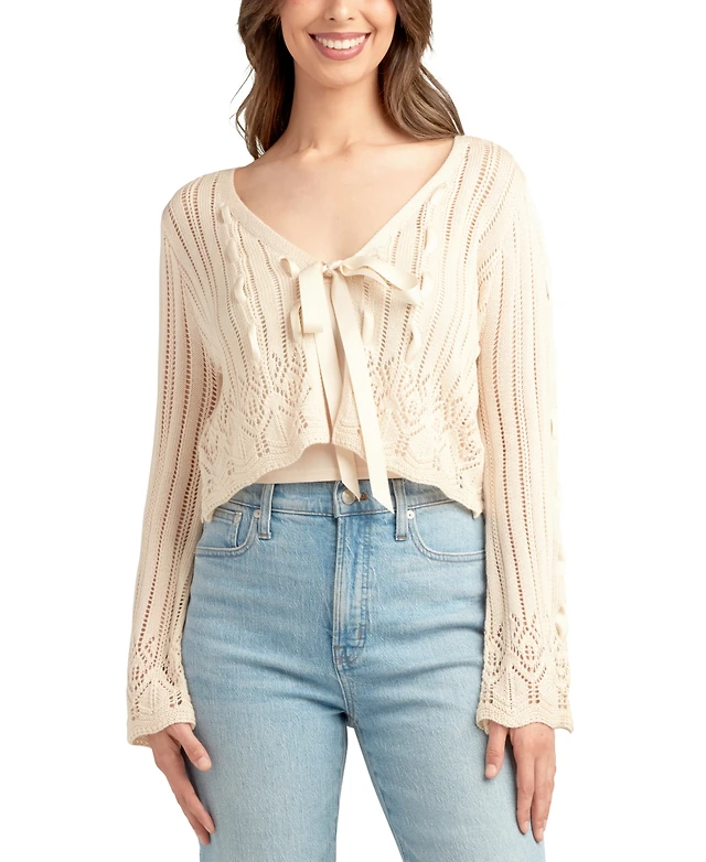 Bcx Juniors' Tied Ribbon Knit Cardigan
