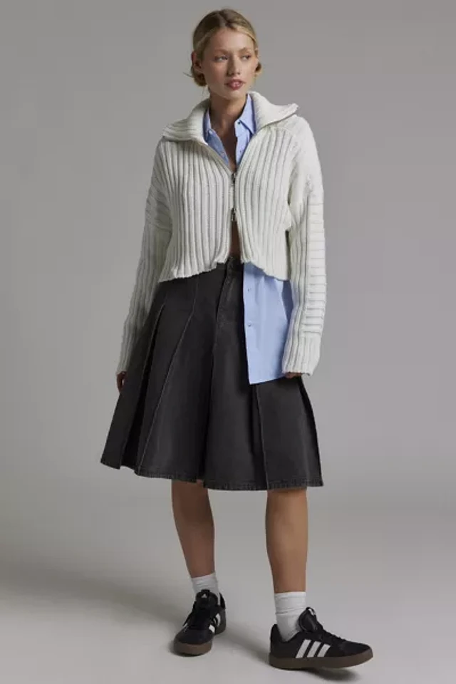 BDG Chad Ribbed Knit Cropped Zip-Up Sweater