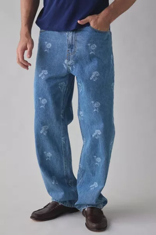 BDG Logan Printed Buckle Baggy Barrel Jean