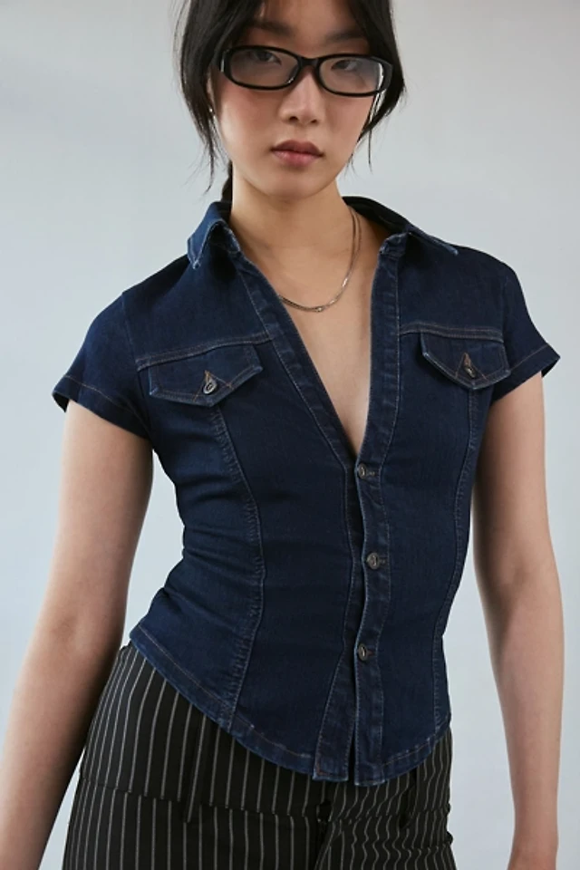 BDG Polly Denim Slim Short Sleeve Button-Up Shirt