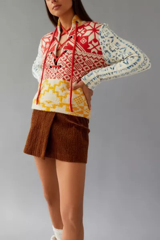 Wear by Erin Andrews Women's Green Bay Packers Lace-Up Sweater