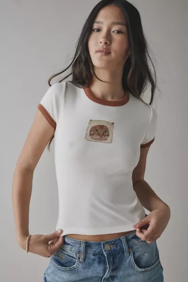 BDG Too Perfect Toast Cat Graphic Ringer Baby Tee