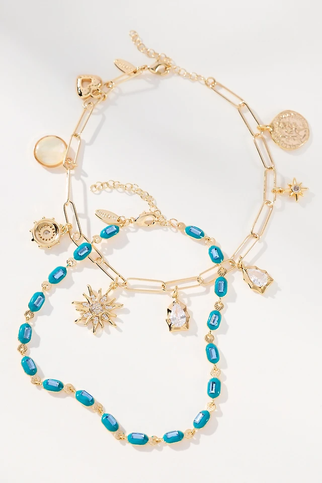 Ettika Mixed Chain & Crystal Necklaces, Set of 2