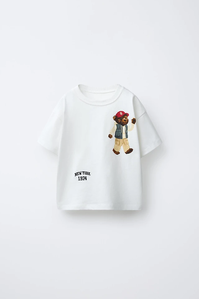 BEAR EMBROIDERED TEXT T-SHIRT