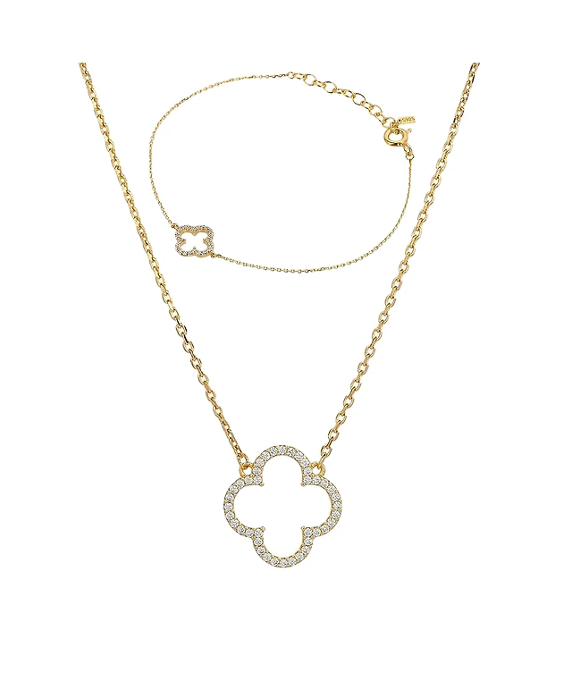 Bearfruit Jewelry Sterling Silver 18k Gold Plated Aria Clover Necklace & Bracelet Set