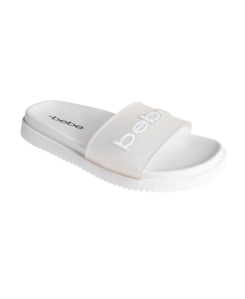 bebe Women's Sandal with Translucent Upper and Rubber Logo Patch