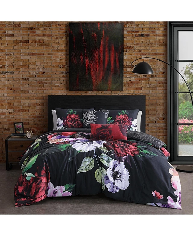 Bebejan Scarlet Bedding 100% Cotton Sateen 5 Piece King Size Reversible Comforter Set