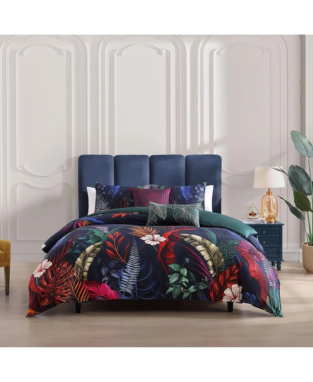 Bebejan Tropical Fusion Bedding 220 Thread Count 100% Cotton Sateen 5 Piece Queen Size Reversible Comforter Set