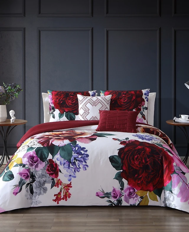 Bebejan Dahlia Bedding 100% Cotton Sateen 5 Piece King Size Reversible Comforter Set