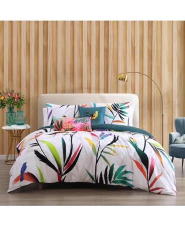 Bebejan Tropical Fusion Bedding 220 Thread Count 100% Cotton Sateen 5 Piece Queen Size Reversible Comforter Set