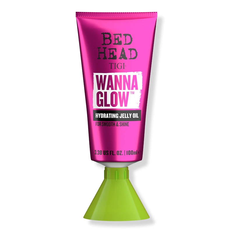 BH WANNA GLOW JELLY OIL 3.38OZ. Benefits: Bed Head's new Wanna Glow Serum with a powerful smooth, shiny formulation. moisturizing jelly oil adds intensive moisture to dry hair. Helps to fight frizz and smooth flyaways. Great for adding moisture and shine to dry, dull, frizzy hair. Scent Type: Tasty Pear fragrance. :