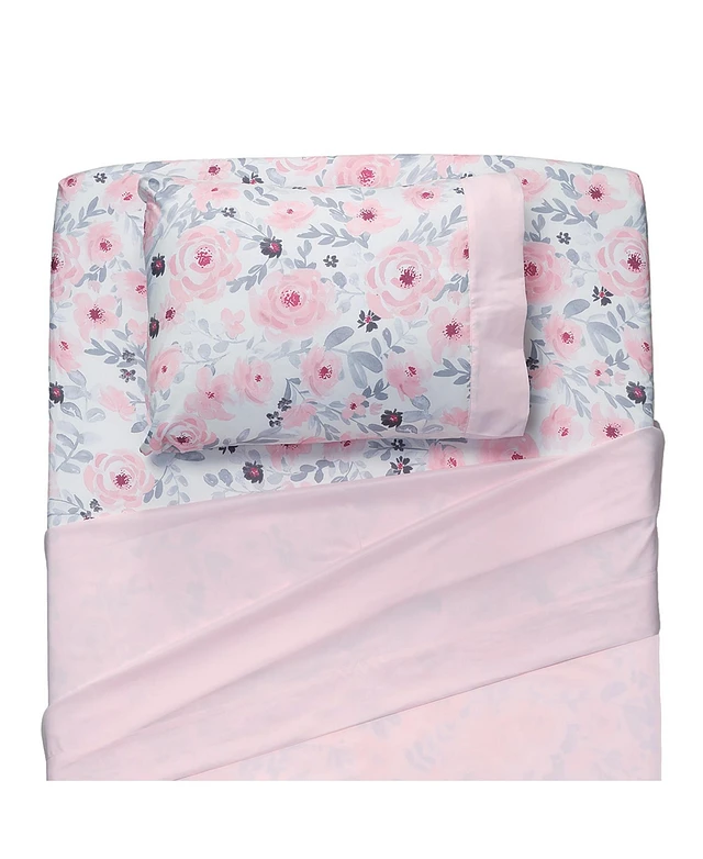 Bedtime Originals Toddler Blossom 4-Piece Pink/Gray Watercolor Floral Bedding Set